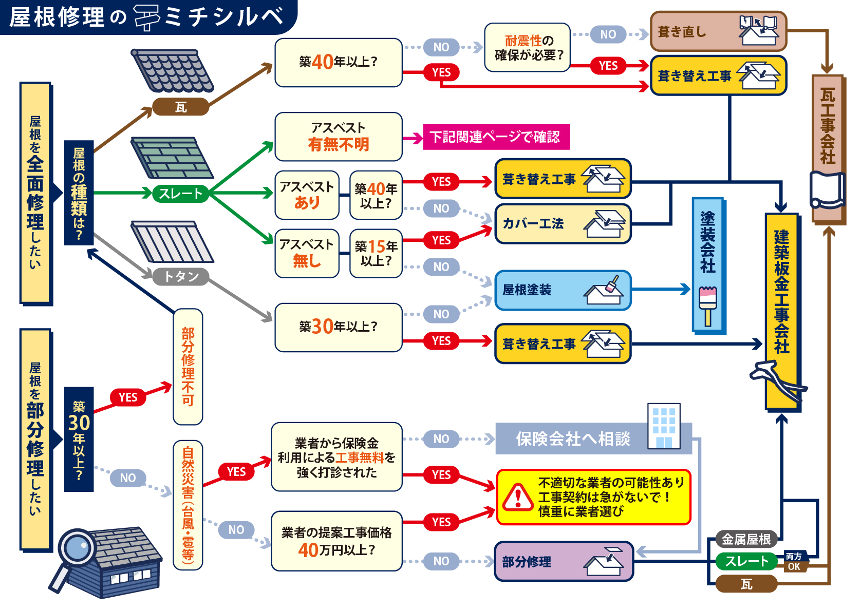 部分修理と全面修理どちらが適切?屋根修理のフローチャートを活用