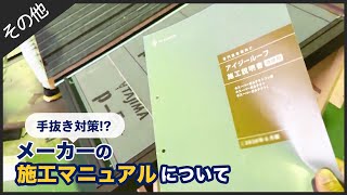 金属屋根工事は複雑で施工方法が定まらないため、テイガクは独自のオリジナル施工マニュアルを作成しています。工事を下請けに丸投げせず、自社で定めたマニュアルに基づき、職人のアイデアも尊重しながら、一貫性のある高品質な工事をお客様に提供しています。定期的に施工方法を議論・検証し、明確な基準を設けています。