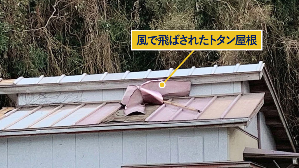 30年が経過したトタン屋根は屋根内部まで腐食が進行していることが多く、強い風が吹くと屋根が飛ばされることがあります。