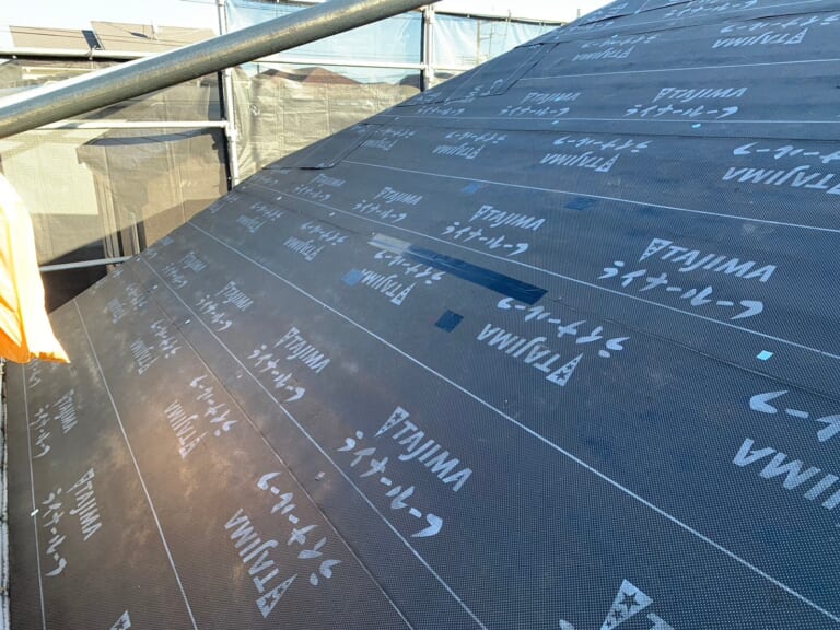 アスファルトが原料のシート状の屋根材。価格が安いが耐久性は低い。 |
