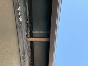 破風板を板金巻きする為、既存の軒樋を撤去します。