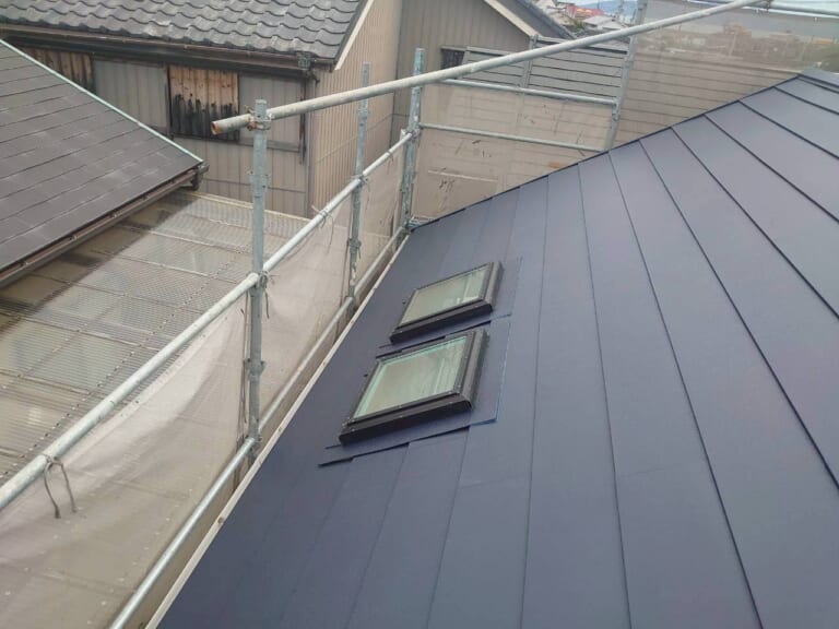 神戸市西区 – 差し棟板金で施工されたスレート屋根を金属製貫板(エスヌキ)使ってカバーリフォーム